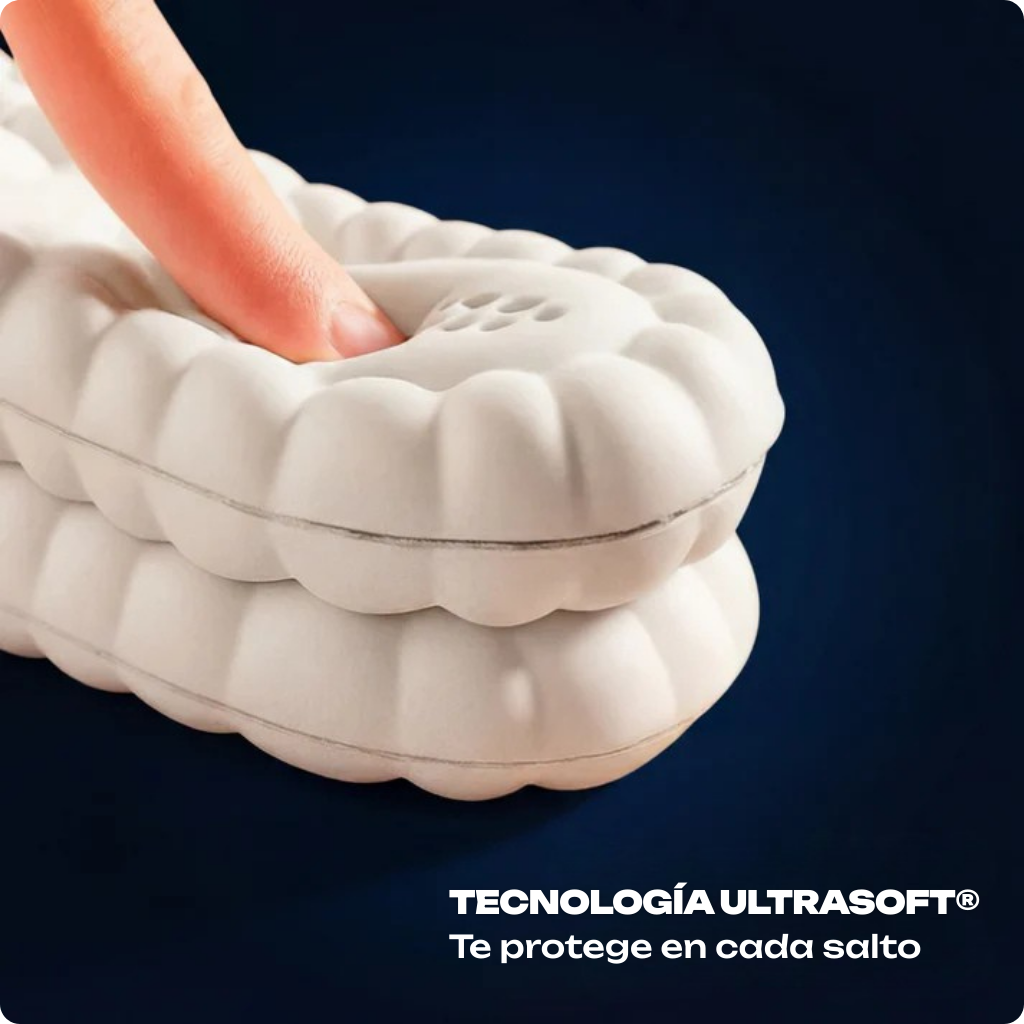 La capa superior cuenta con tecnología anti-fricción que elimina el calor y previene ampollas, mientras que el soporte del arco biomecánico corrige la postura de tu pisada en tiempo real.