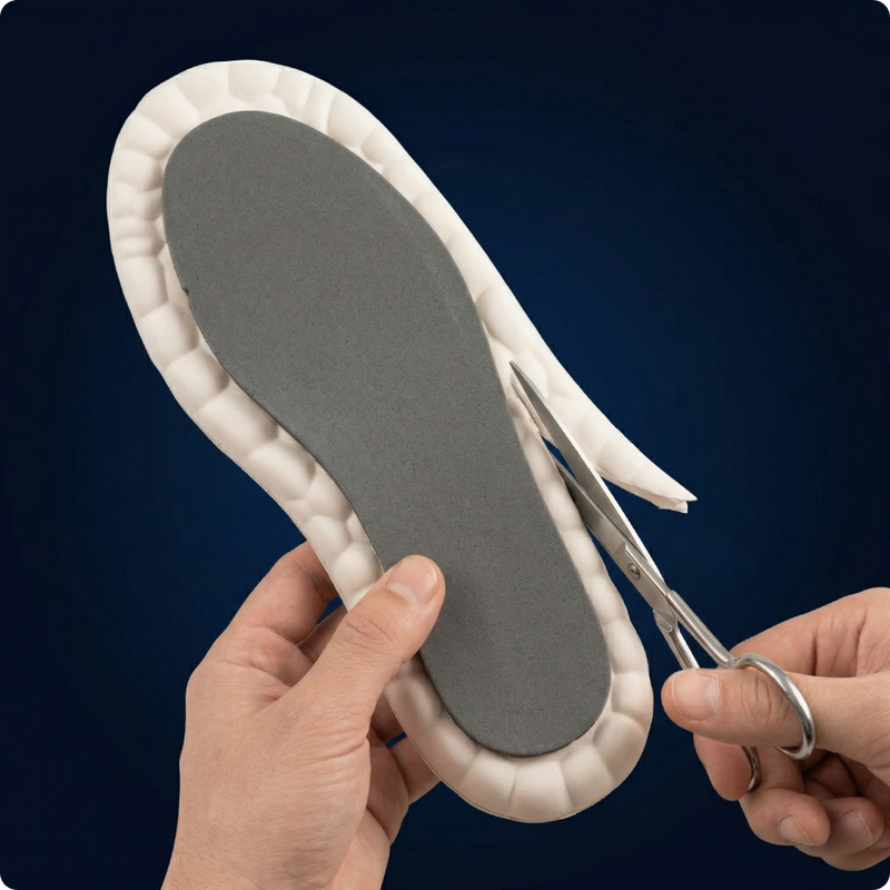 Vienen en rangos de tallas; solo usas la plantilla original de tu tenis como guía para recortar el sobrante y asegurar un ajuste milimétrico.