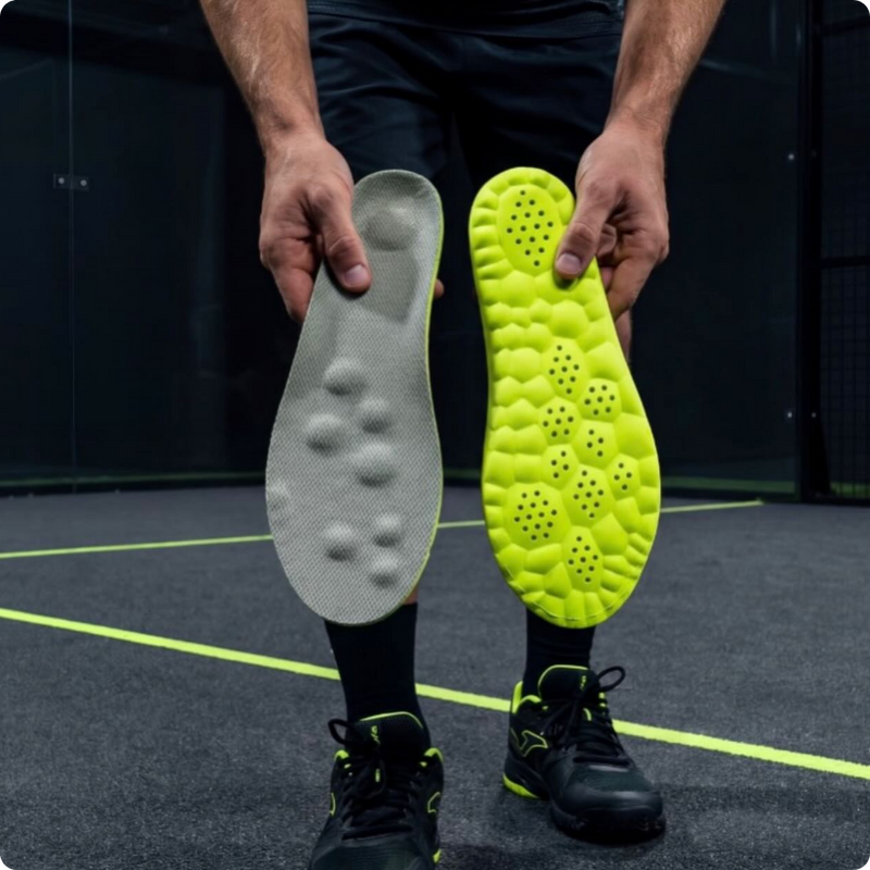 Solo tienes que retirar la plantilla genérica que viene de fábrica y colocar tu Padel-Pro®. El cambio en estabilidad y confort es inmediato.